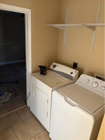Rear unit duplex, open floor plan, ceiling fans and ceramic floors throughout, all electric, central A/C and heat, includes glass top range/oven, above range microwave, dishwasher, refrigerator, washer and dryer, no pets, no smoking, owner maintenance including grass, fenced rear yard, double car off-street parking. $1200 deposit, 2 year rental agreement, Rental application required. Available November 2025. Call Rosie at show contact info