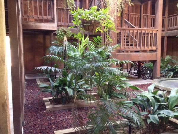 TRUE TO ITS NAME, GREENHOUSE APARTMENTS IS A 28 UNIT COMPLEX DESIGNED TO RESEMBLE A GREENHOUSE. THE INTERIOR CONSIST OF STAINED WOOD BALCONIES, CEILINGS AND STAIRWELLS. HANGING PLANTER BASKETS ARE SUSPENDED FROM THE SOARING 3 STORY CEILING AND SKYLIGHTS ALLOW A LOT OF NATURAL LIGHT. THE STUNNING ATRIUM IS LOADED WITH LUSH LANDSCAPING; LAVA ROCKS, WITH A FOUNTAIN NESTLED IN THE MIDDLE.