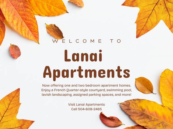 Looking for a charming place to call home that’s close to everything? Lanai Apartments in Metairie offers just that!