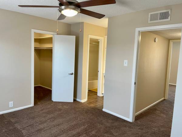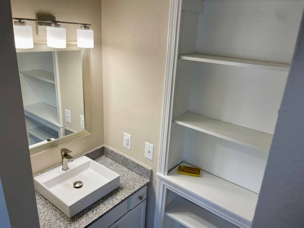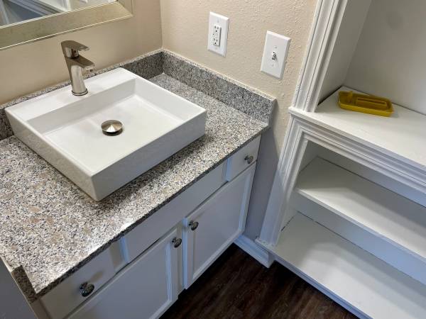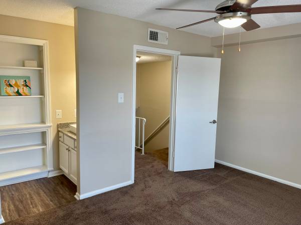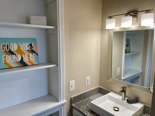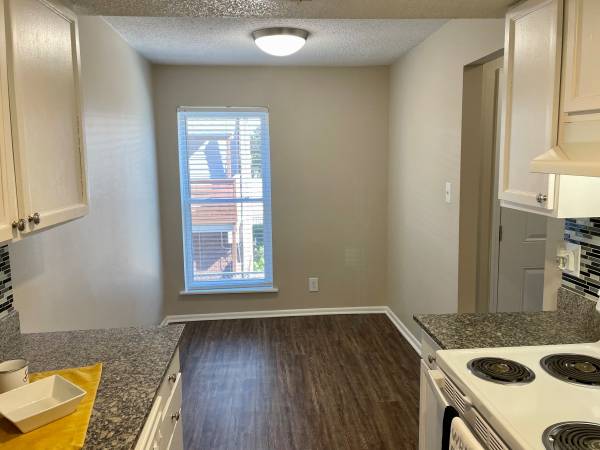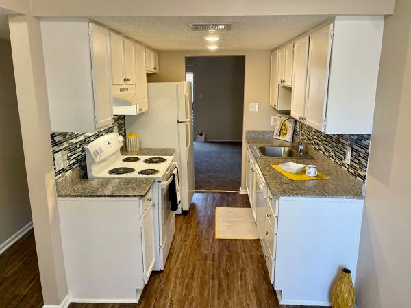 Over 1,000 square feet of living space and upgrades, apt 213 is a 2 bedroom 1.5 bath townhouse and features home decor lighting fixtures, white-wash walnut flooring, authentic granite counters, mosaic tile backsplash, modern square bathroom sinks, and faces sparkling swimming pool!