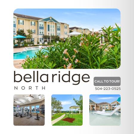 Come home to the ease of free parking in our attached multi-level direct-access garages. Lounge in a private cabana by our large resort-style swimming pool, complete with tanning and soaking ledges. Stay active in our 24-hour fitness center featuring the latest Precor equipment. Bella Ridge North caters to everyone, including your pets, with “Bella Bark,” a gated area just for them.