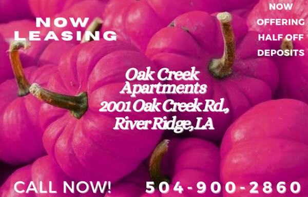 Sit back and imagine the luxury of living in an elegant apartment home located within The Creeks of River Ridge, a gated garden community just minutes from work and play. Oak Creek Apartments is conveniently located to Downtown New Orleans, Elmwood Business Park, the Earhart Expressway, Huey P. Long Bridge, and Interstate-10. Our location is also ideal for individuals attending local area universities such as Tulane, Loyola and Xavier.