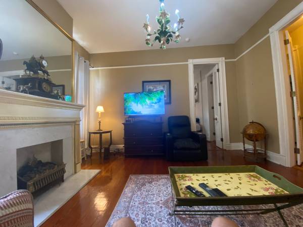 Tastefully Fully furnished , Furniture can be moved or stored if you have some of your own. Amazing Apartment. Fully gated and lit/Fully wrought Iron Gated property,1 Gig Wi Fi, u tube tv, All streaming channels(Netflix, Vudoo, Prime, Disney + Hulu, Paramount +Amazon.,etc include in 4K,New Samsung QLED 4K TV, Water and Sanitation included Granite topped fully equipped kitchen, All utensils, pots, plates, towels, linens , etc. Private French Quarter Courtyard. Central Air and Heat. Ornate shuttered chalet doors with heavy brass hardware. Opening transoms. York central air and Heat. Very Private, well lit , secure with a canopy of 200+ year old Oak Trees. Fully Gated Private Brick Driveway, off street parking/ 12 foot ceilings, Ornate stained glass, Tiffany Chandelier, Granite Tops in chefs kitchen