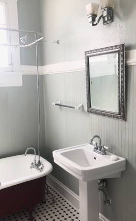Welcomed by a generous front porch, this immaculate apartment is your perfect home. A double parlour living room is separated by operable pocket doors offering a second bedroom. The original hardwood floors stretch throughout the living room and two bedrooms. Original fireplace mantles with tile surround grace each room. A short hallway leads to the kitchen passing the quaint bathroom along the way. A pedestal sink and claw foot tub transport you to a relaxing bath. The kitchen is outfitted with custom slab door all wood cabinetry and sparkling appliances. The kitchen is large enough to hold a breakfast table and the rear door leads to your own laundry room just before the back door to the yard. The yard is fenced and shady. Tenant are responsible for back yard upkeep. Pets are welcome with a $300 non-refundable pet fee and a photo of the fur baby for the owner to approve. Located in the Irish Channel this apartment is only blocks from Magazine Street establishments like The Bulldog, Breauxmart, Rum House and more! Call now to see this amazing space before it's too late!! show contact info