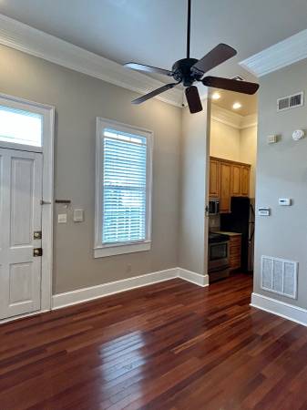 Beautiful one bedroom apartment located steps from St. Charles Avenue in the historic Lower Garden District. Fully equipped kitchen with stainless steel appliance including refrigerator, dishwasher, stove and microwave. Granite countertops. Custom cabinets. 12 foot ceilings with crown molding and ceiling fans. Central air and heat, wooden floors, laundry on premises. show contact info