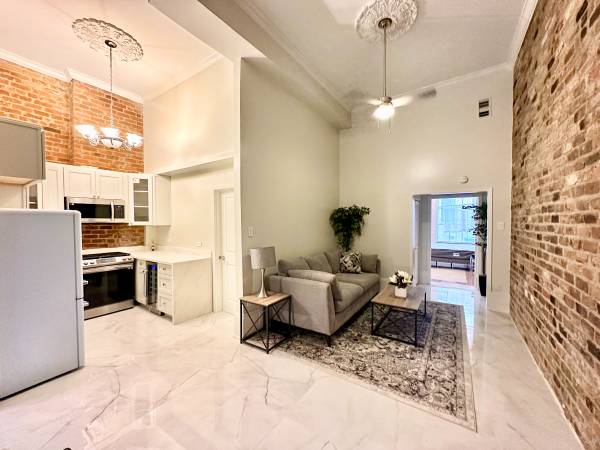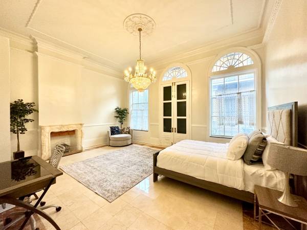 Beautifully designed and furnished 2 bedroom home on Bourbon Street. This unit is just perfectly located in the center of the French Quarter and walking distance to everywhere you want to go. Enjoy all the New Orleans charm with gorgeous crown molding, large custom tile floors, beautiful chandeliers, and tall 12-foot ceilings throughout the home. Just perfect for a family and/or entertaining as you can step right out onto Bourbon or step out back to the courtyard. The gourmet kitchen is perfect for any chef featuring a quartz countertop, new custom cabinets, and new stainless steel appliances. Both spacious bathrooms have been updated with marble tile and new fixtures. This unit also includes private laundry, central AC and heat, and access to a nice courtyard.