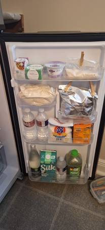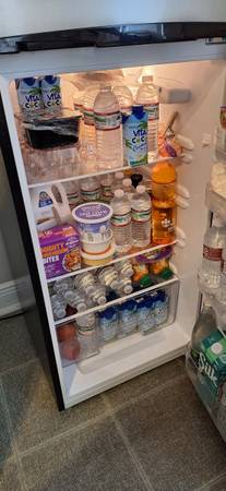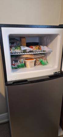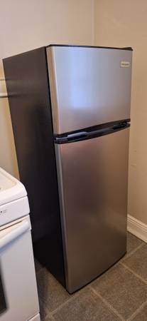 Moving!!! only 3-Months old/Frigidaire 7.5 cu. ft. Top-Freezer 5-months old/Refrigerator with Platinum design look features upfront temperature controls that make it simple to regulate both the fresh food and freezer sections. Adjustable shelves provide flexibility to meet your food storage needs. Combines easy-to-use features with practical design to complement any kitchen. Maintenance is easy with the convenient cycle defrost system and finding your favorite beverages is a breeze due to the tall bottle storage in the door.