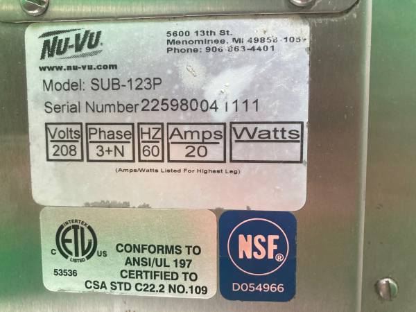Nu-Vu sub123p oven and proofer (from Subway franchise), well cared for, works fine- only replacing due to franchise requirement. Can demo on site. $2000obo