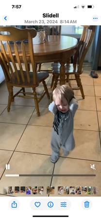 Heavy wooden table. 2 extra leaves. 6 chairs