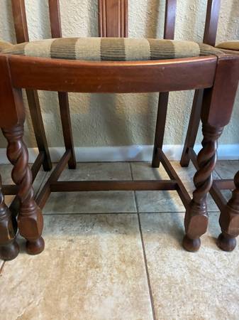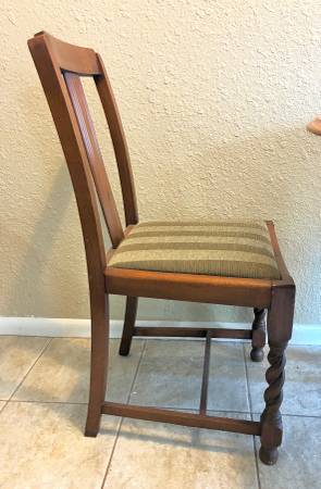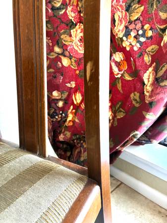This antique drop leaf table and four sturdy chairs are in good condition for their ages and need a new home. (The table legs have casters.) $240 or best offer.