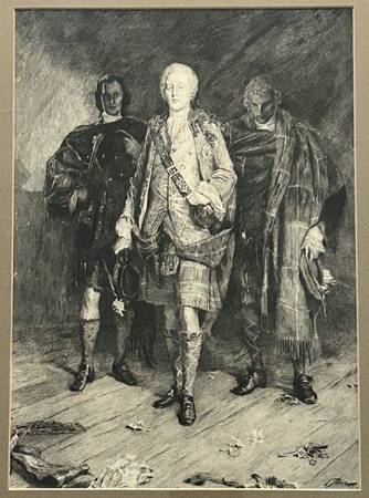 This antique engraving, exhibited at the 1893 World's Colombian Exposition in Chicago, beautifully captures Sir John Pettie's original painting of Bonnie Prince Charlie. A compelling depiction of Charles Edward Stuart, a British throne claimant and leader of the 1745 Jacobite Rising, this lovely work that was engraved by Charles-Andre Coppier and published by George Barrie is an excellent addition to your home decor.