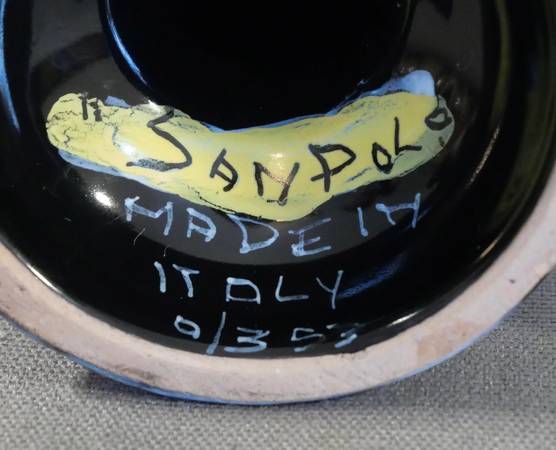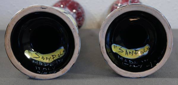 Up for sale is a Pair of Vintage 1960’s Italian Mid Century Modern San Polo Ceramics Crackle Finish Candlesticks! They each measure 9 3/8” tall. The pair is in excellent overall condition with minor signs of wear consistent with their age and use (scattered light surface wear; small section on top inner edge of one filled in with black marker (see pic)). Please message us if you have any questions. Thanks!