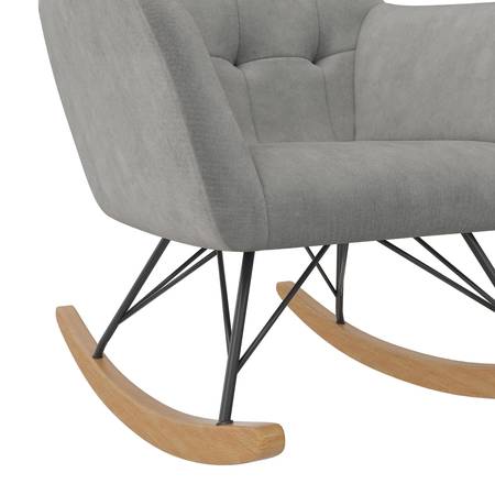 "Like new" nursery rocker. Gray velvet material. Very comfortable chair with very smooth rocking motion. Sells new for $190 (pre tax). Selling for $100. Rocker was barely used, child is older now...