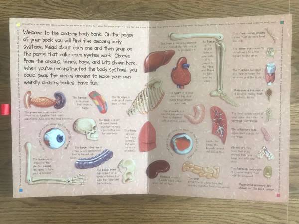 Each page has clues that help the young biologist discover the correct organs and limbs to make the human body function. In the tray are tongues, lungs, eyes, thighs, hearts, and parts to complete five of the key systems that work together to make your amazing body fit and healthy!