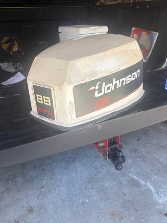 Late 90s johnson 88 hp great compression all cylinders controls,stainless wheel port may need carburetors cleaned ran good when removed off boat but been awhile
