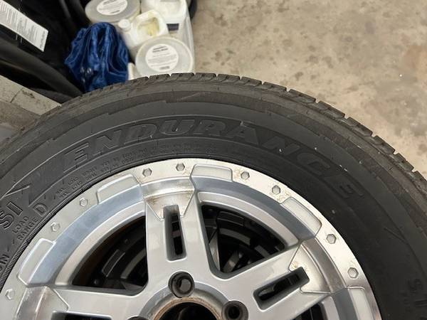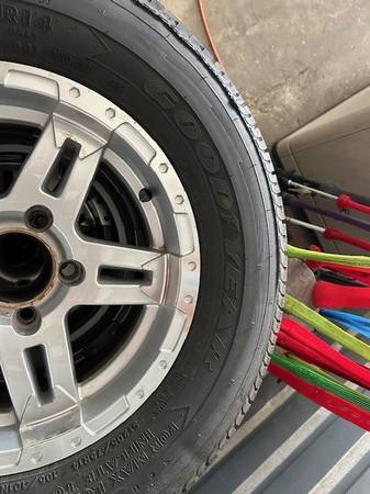 Matching set of 5 wheels and tires In great shape with plenty of life on the tires Standard bolt pattern Goodyear Endurance Size 205/75R14 Call ONLY. No text. No email. 2two5-57one-1one21