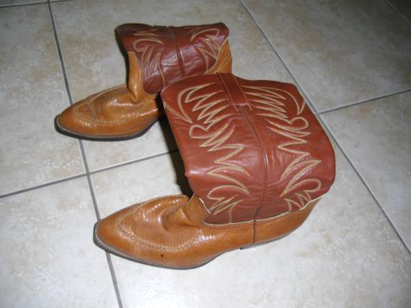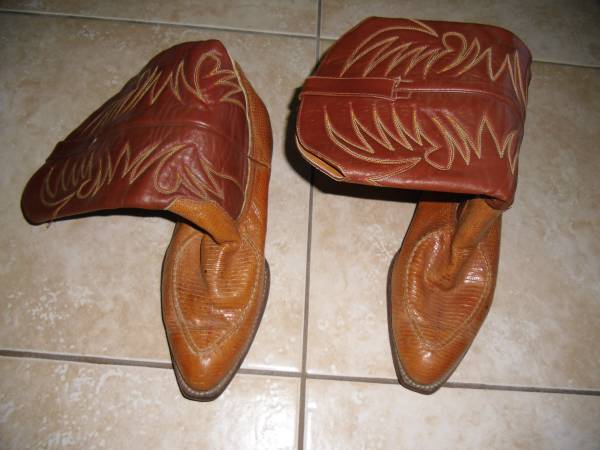 Made in Mexico these boots are like-new having been worn only a few times. Size 8 1/2 D. Made of lizard skin (bottom) and leather (top). Beautiful neutral color goes with all colors of clothing.