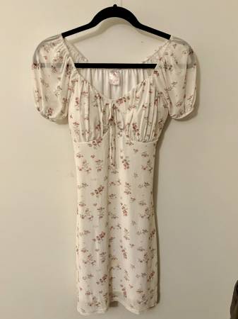 No Boundaries Milkmaid Dress, White Floral print, Coquette Puff Sleeve, short mini dress with an allover delicate floral print against a white/ivory base. Juniors Size S. Shell 95% Polyester, 5%...