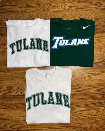 Tulane T-Shirts 1 White Size Extra Large, Never Worn $15 1 Green Size Large, Never Worn $15 1 White Size Medium, Probably Worn Once or Twice $10