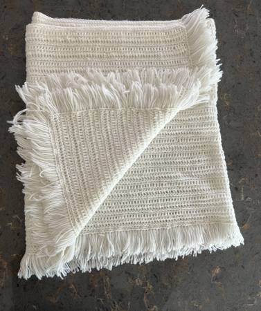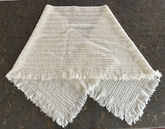 Vintage Crochet Shawl Measures about 68 inches x 21 inches, inclucing fringe Machine washable