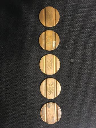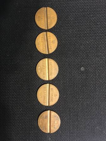 Five (5) Old Italy Gettone Telefonico Coin Token-slotted (brass) $1.00 each or all five for $4.00 call or text