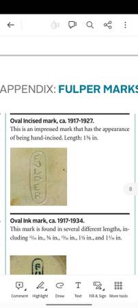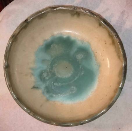 Antique Fulper Art Pottery Bowl c.1918 Rare! Double stamped on bottom. $175 11.75" diameter round x 4" Ht. Gorgeous drippy Turqoise & Cream colors. Serious buyers only. Ads from previous Fulper...