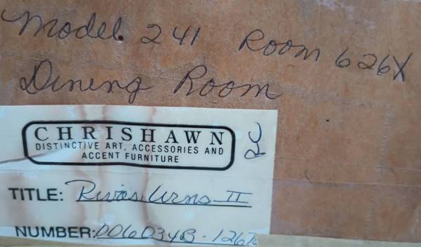 DISTINTIVE CHRISHAWN ART RIVAS URNS l & RIVAS URNS ll (TWO SET) Elegant Dining Room Distinctive Art MEASURES 35 1/2" Height - 27 1/2" Width $75.00 Each $150.00 For Set