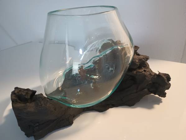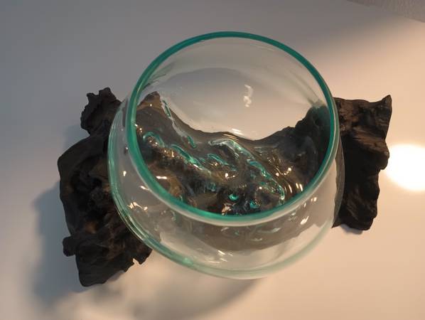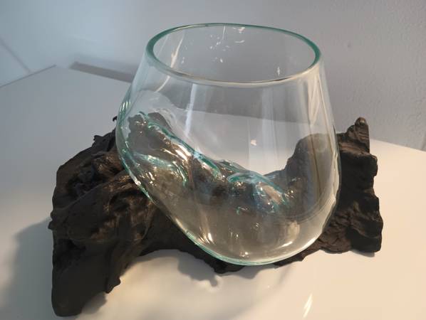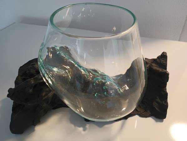 100% BRAND NEW 100% UNUSED GREAT VALUE! Beautiful Hand Blown Molten Glass & StoneWood Base. Terrarium/Vase/Fish Bowl - Premium Quality Heavy Base Stone Wood Terrarium/Vase/Fish Bowl Sets...