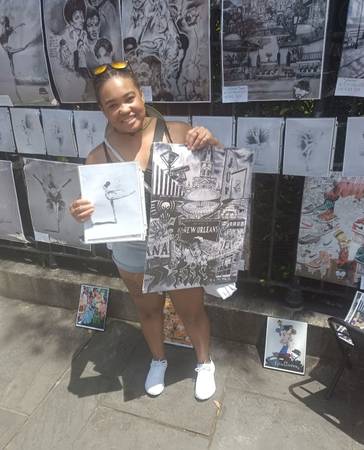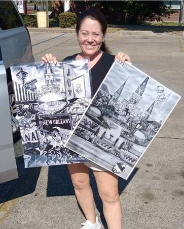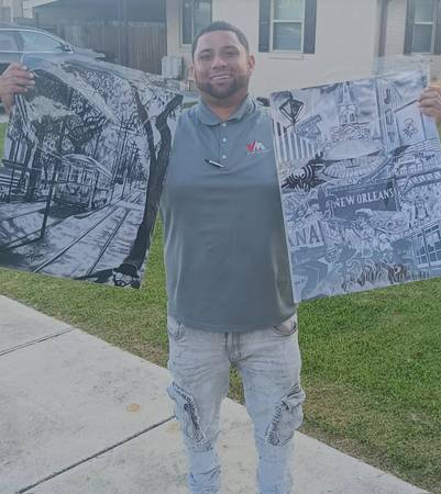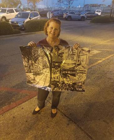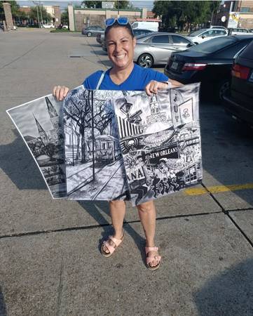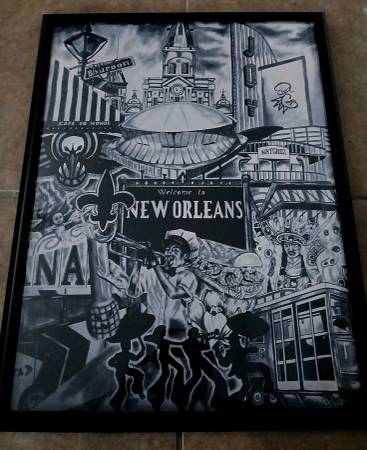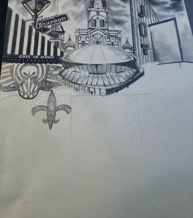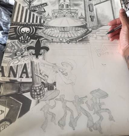 Hand drawn New Orleans themed collage. Drawn with pencil and charcoal.