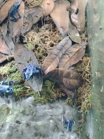 I have 6 Dendrobates Tinctorius 'Azureus' about 5 months out of water and currently feeding on Hydei fruit flies for $50 each. I also have both Hydei and Melanogaster fruit flies for $6 a culture....
