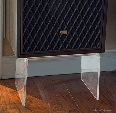 These two Sansui SP-X8000 speakers are in excellent condition! Designed for high-quality home audio that includes a 16-inch woofer, two midrange speakers, a tweeter, and two super tweeters plus two bass ports and sound control switch. Plus two acrylic risers to get the speakers off the ground. And speaker wire (25').