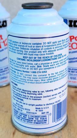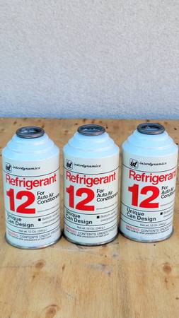 4 cans Ig-lo du pont freon r12, 3 cans Interdynamics r12, total of (7) 12 oz. Full (NEW OLD STOCK) Cans of freon refrigerant. 350.00