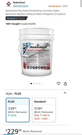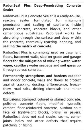 RadonSeal Standard Deep-Penetrating Concrete Sealer - Basement Waterproofing & Radon Mitigation 5 gallon new Call or text