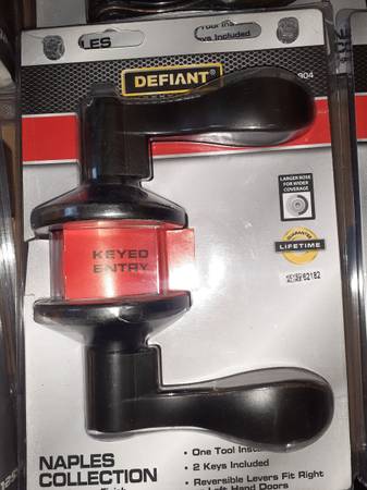 Two Kwikset and four Defiant brand All have bronze finish. NEW in box, ALL have two keys. Either interior or exterior with reversible handles. They're approximately $35new.