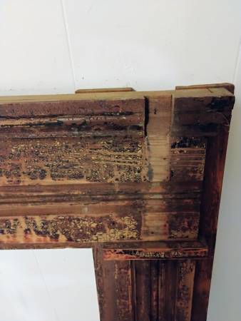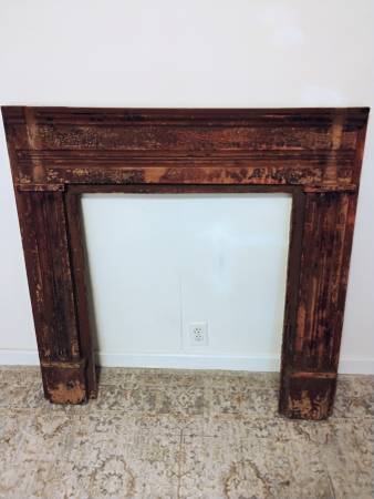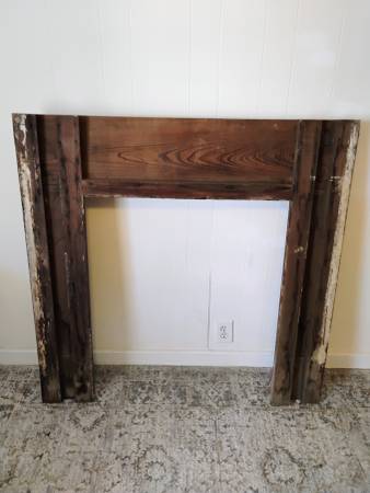 Old Cypress mantle. As is. The old finish is pretty much peeling off on its own due to age. So a light sanding staining/painting is all that's needed. Other than the brackets and the top shelf....