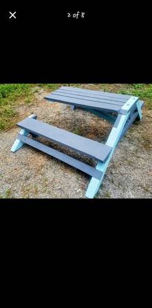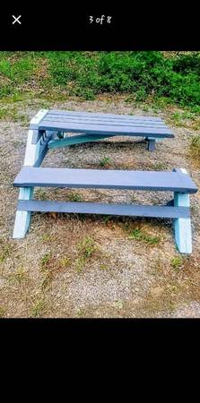 Seats 4-6, depending. 4x4s joined using halflap joinery make up the frame. Painted 2.tone to accentuate the half lap joints. Cantilevered table top (will come with a support brace for longevity.