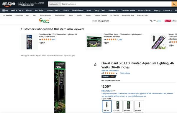 Fluval Plant 3.0 LED Planted Aquarium Lighting, 46 Watts, 36-46 Inches