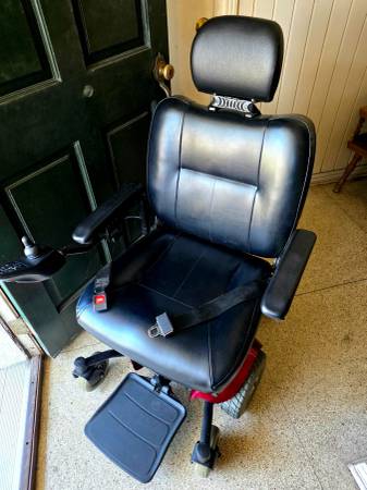 This Pronto M41 Power Mobility Wheelchair is in Very Good Condition and has plenty years of use left! This high quality Power Wheelchair features a big plush leather adjustable Captain Seat, Flip Up Foot Plate and arms, high quality joystick, 10 inch Solid Drive Tires, and it's built with a strong Battery Range up to 17 Miles! This dependable Wheelchair cost $3,000 new and is made by Invacare, a top company in the field! It features the latest technology, as well as a good range of speeds adjustable from slow to speedy. The M41 is very stable with six wheels on the ground providing safety and maneuverability so you feel safe while being able to become fully mobile again.