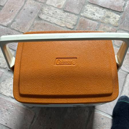 Vintage Coleman lil oscar lunch box white orange cooler Great small cooler. This is old I’m not sure how long I’ve had it. Haven’t used in awhile selling as pictured. Works great