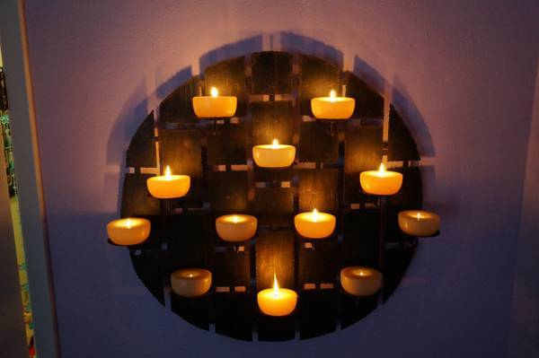 OBO... Unique round Candle Sconce Metal wall decoration that holds 12 candles (candles included). 30.5" in diameter and brackets hold it about 2" off of the wall. Rustic bronze/dark brown iron...