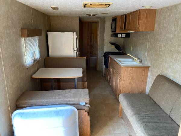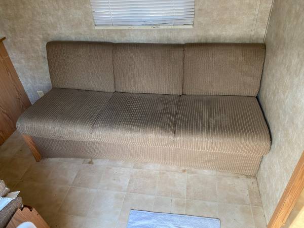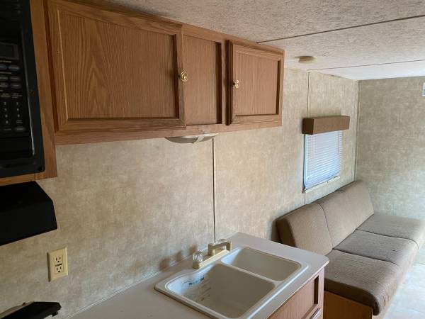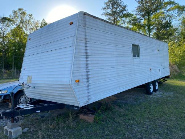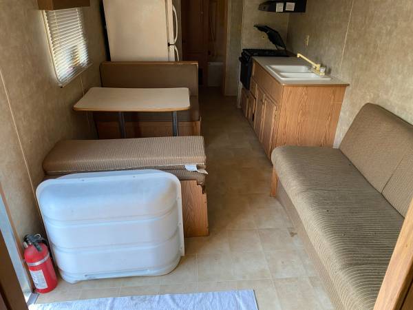 Up for sale is a VERY NICE, HARD TO FIND, 32' FEMA trailer, bumper pull, 30Amp connection, 110V, 30amp; 12V electric system and propane equipped, comes with (2) 7.5 gal propane tanks and plastic cover. Takes a large 2 5/16' ball for towing. Roof a/c, private Queen size bedroom with privacy door, bed covered with gray quilt, Rear single bunk beds, tub/shower (walls need light cleaning), full size house glass toilet, full size home fridge, 3 burner stove/oven combo, double kitchen sink, table/benches convert to bed, day bed style couch converts to bed, Double axle with trailer brakes, microwave, lots of storage. Super nice, clean interior. Requires a 3/4 truck to tow and buyer must remove after purchase. Roof maintenance and caulking previously done, no leaks. Remember it is USED, not NEW or perfect, but extremely nice and ready for living or use. Price is $9500 CASH ONLY.