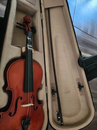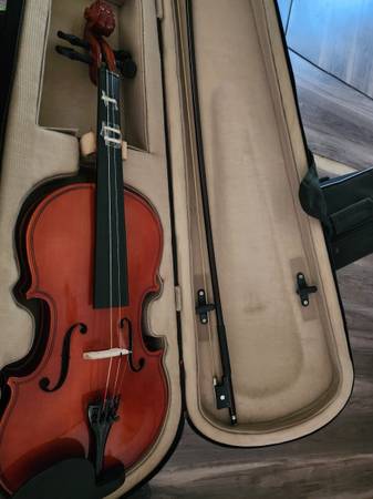 Violin belmonte 9045 size 4/4 with soft case. INCLUDES WOOD HORSEHAIR BOW, DELUXE FOAM CORE CASE, CHIN REST. Please leave number in subject is serious