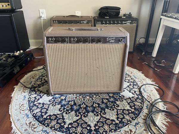 Killer vintage amp. Brownface deluxe from 1962. Pretty clean considering the age. Highly desirable era of amps from Fender for good reason and the Deluxe is a standout. Well cared for. Pre-cbs...