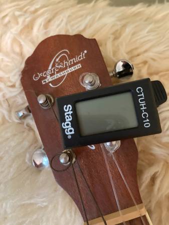 OscarSchmidt by Washburn. I'm including a Stagg tuner. This is the larger version of a Ukulele in excellent condition that has been used very little. The tuner is included at no extra cost.