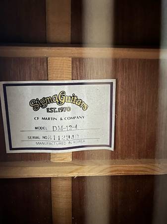 Like new Martin Sigma DM-12-4 12-string guitar with case. You won't find a better one than this. I had not taken it out of the case for a number of years and it was STILL in tune! Serial #: 8112940, suggesting it was made in 1981.