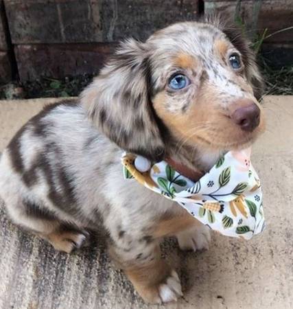 Dachshund puppy – 9 weeks old! Friendly, energetic, loyal, well-socialized, and fully vaccinated. Rehoming fee applies. Text or call