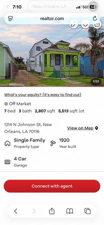 For Sale By Treme Area Owner 2 unit camel back house historic home rental or single family home 1214 North Johnson Street unit A downstairs unit 4 Bedrooms 2 Full baths Living room, Sunroom, Den and Large Kitchen Upstairs unit B 2 Bedrooms, Living room, small Kitchen, Large Bathroom, income producing brings in $3100.00 per month as a rental. Off street parking 4 spaces gated yard. Totally renovated in 2012 new electrical and plumbing central Air/Heat