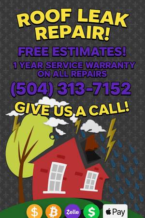 ROOF LEAK REPAIR! SHINGLE REPAIR! LEAK PREVENTION AND MAINTENANCE! Is your roof leaking? The roof leak professionals at Leak Busters we will fix your leaks the first time! We work on all roofs, shingle, flat, tpo and metal. commercial and resedential with the equiptment to get on to any sized building. We seal flashing, ridge caps, vent pipes, vents & ect. Rotting decking under shingles? We can remove, install new decking and replace shingles! Need customized fabricated flashing or wall caps? We do it! Metal roof? We can put a rubberized coating on your roof that will stop all leaks and lower the inside temperature of your home/business. Give us a call at 504-313-7152 24/7 emergency service available we anwser no matter what the time.