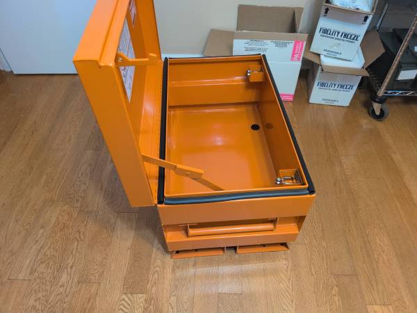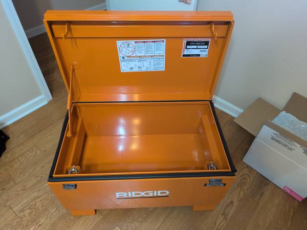 Ridgid 32 in. W x 19 in. H x 18 in. L Portable Jobsite Box. RIDGID 32-inch box. Unused, has been stored indoors. Price firm. I do not have any online payment accounts. If you can see the listing and...