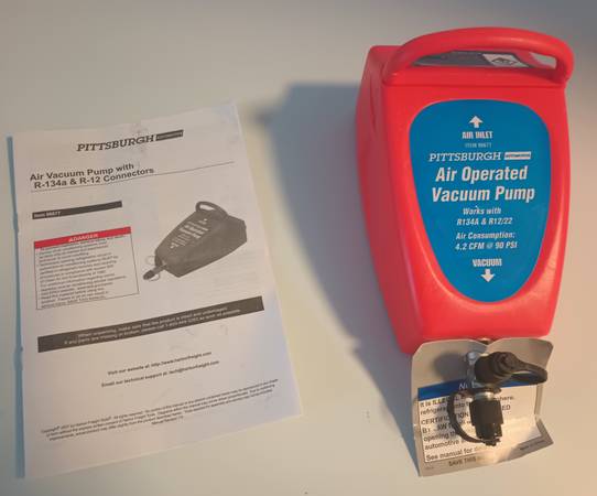 100% BRAND NEW A/C SureBilt Manifold Gauge and Hose 100% UNUSED $45.00 Also Have A Pittsburgh Automotive Air Operated Vacuum Pump 100% BRAND NEW 100% UNUSED $15.00
